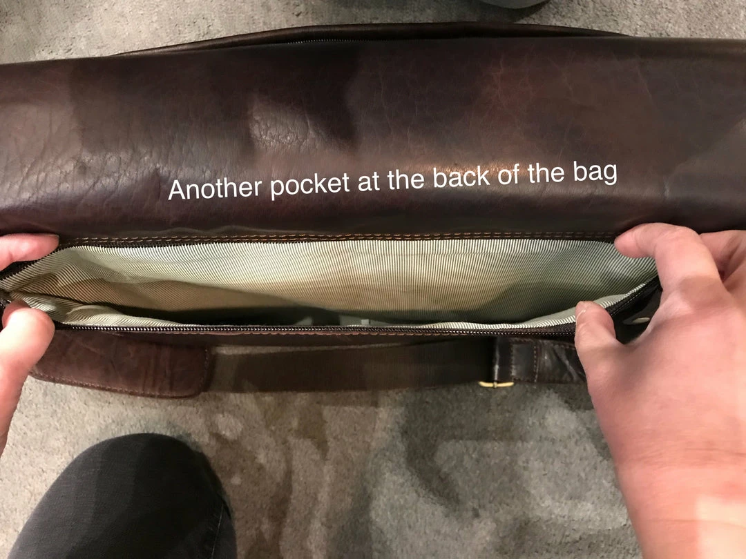 – Under flap there is a large zip pocket.