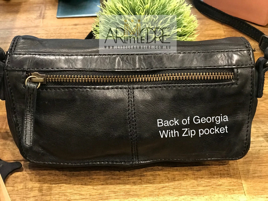 – External, back zip pocket.