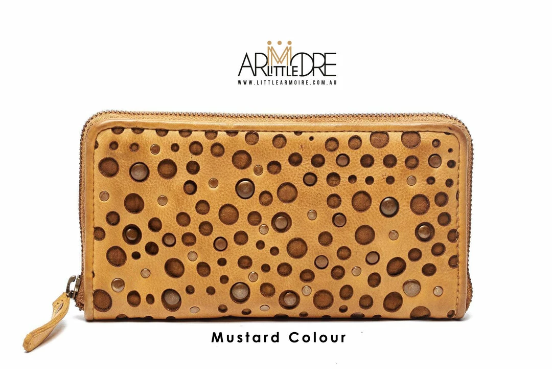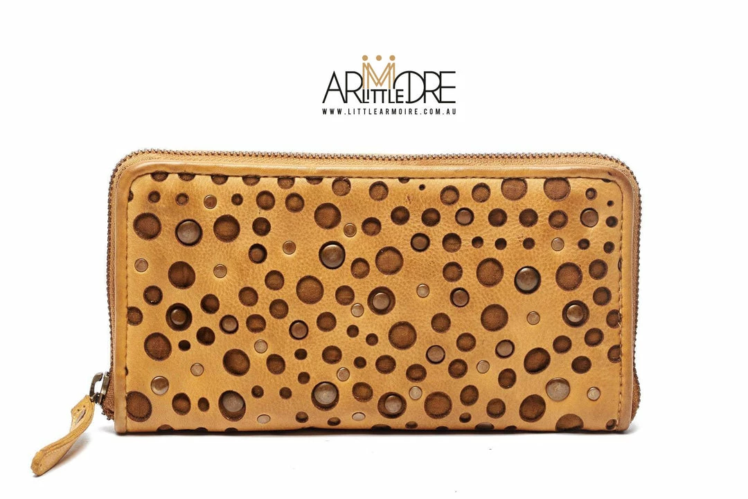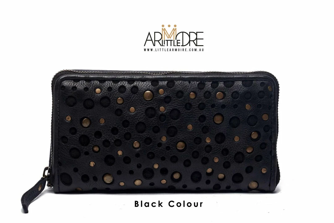 -Ladies zip around wallet with βcheeseβ detail β Laser cut and studs.